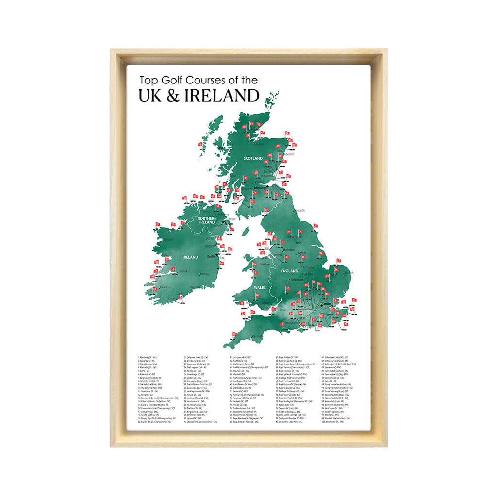 Top Golf Courses in the UK and Ireland Push Pin Map | Canvas Map