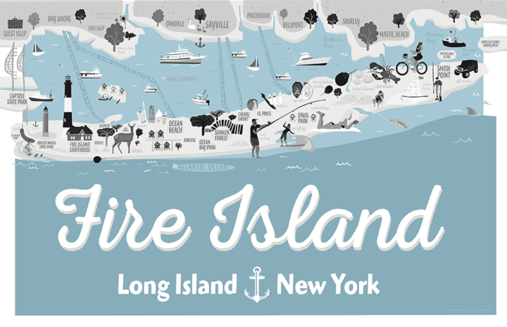 Fire Island Illustrated Map – LOST DOG Art & Frame