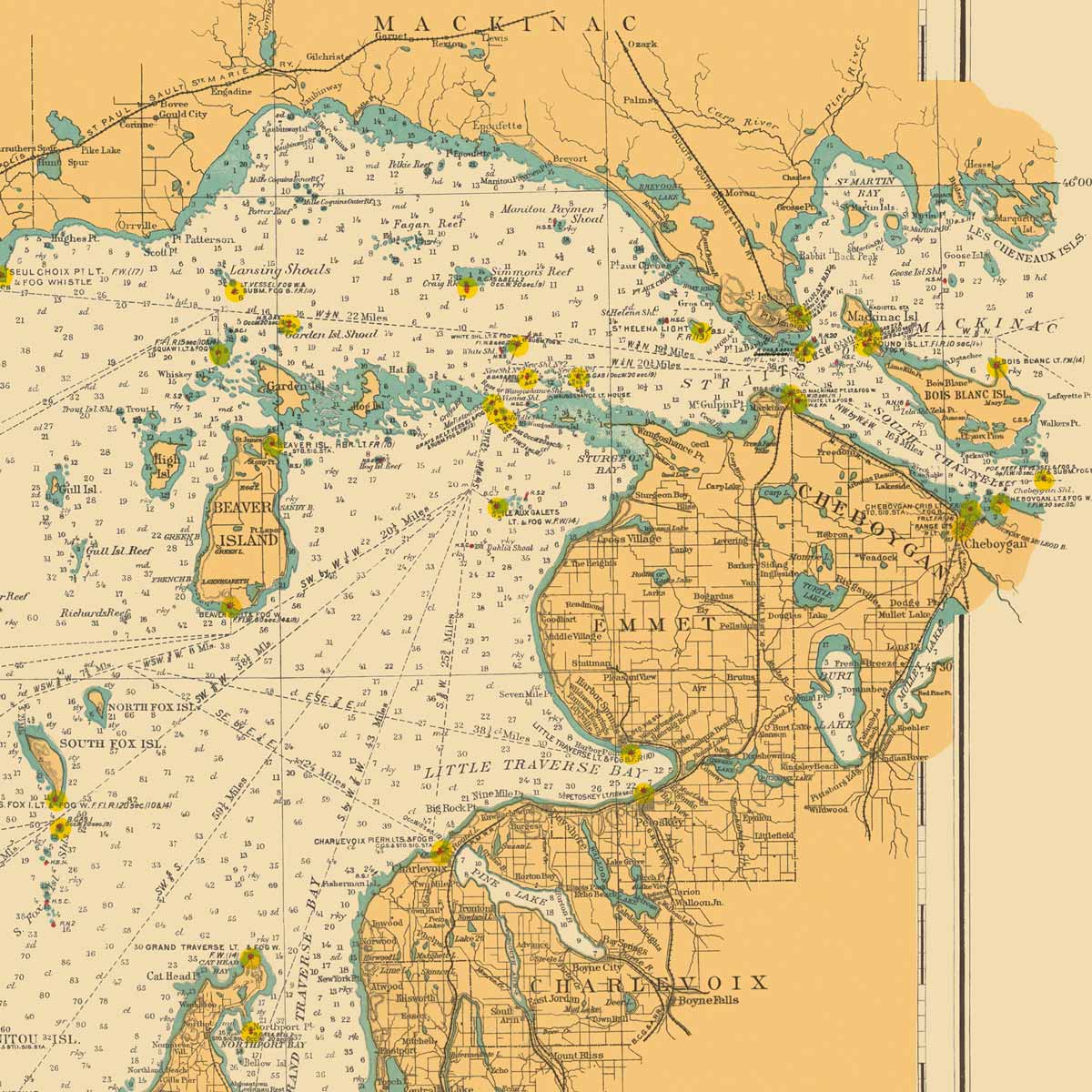Lake Michigan Nautical Chart 1915 โ Muir Way