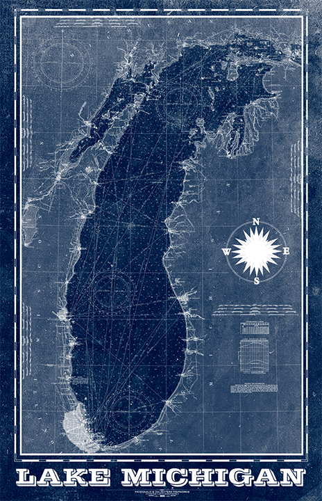 Lake Michigan Vintage Nautical Map โ LOST DOG Art & Frame